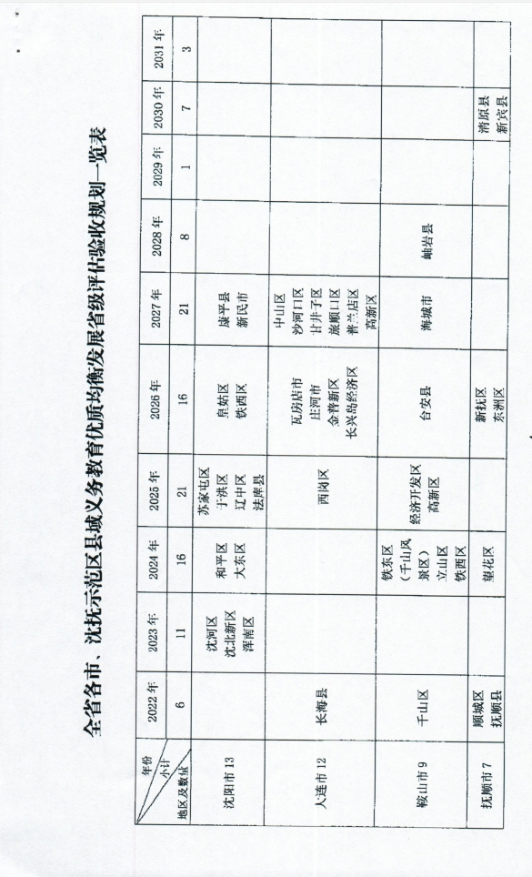 辽宁省人民政府教育督导委员会关于印发全省县域义务教育优质均衡发展评估验收规划的通知